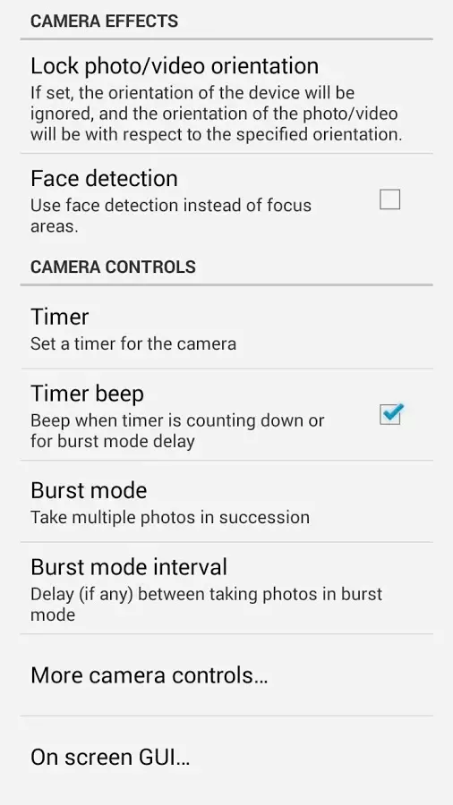 Mode de capture : Cette application met à disposition plusieurs types de prises pour convenir aux besoins de l'utilisateur. Elle propose par exemple le mode burst permettant de capturer plusieurs photos simultanément.